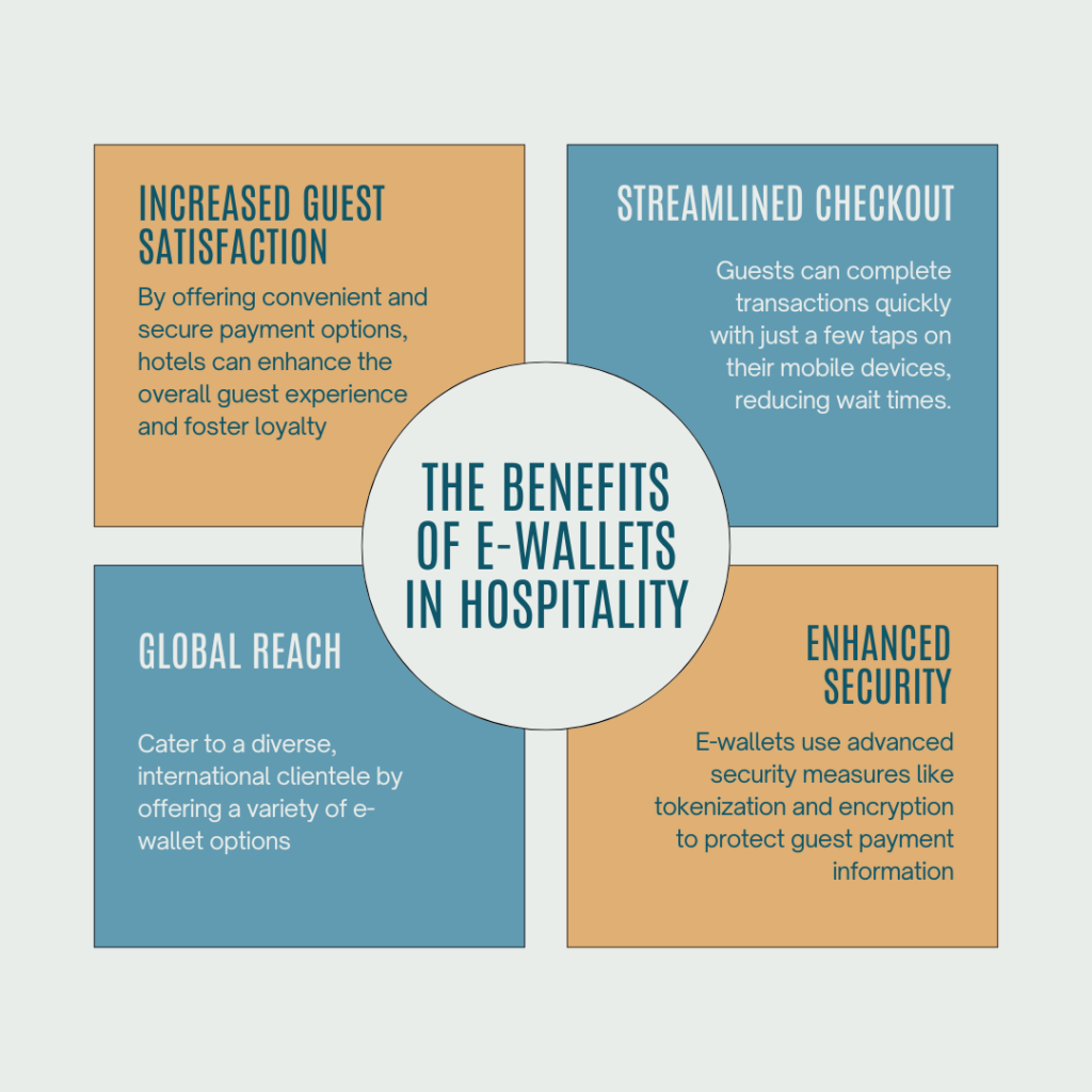 Also, as e-wallets continue to gain popularity, they are becoming an expectation rather than an option. Guests are looking for payment methods that are quick, seamless, and secure. By offering e-wallet payment options, hotels not only meet these expectations but also enhance their appeal to tech-savvy travelers who prioritize digital solutions in their daily lives. The ability to offer multiple payment methods can also differentiate a hotel in a competitive market, providing an edge that can lead to higher guest satisfaction and loyalty.
