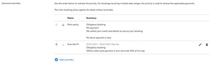 Der Ablauf der Anwendung ist der gleiche wie bei den datumsbezogenen Stornierungsrichtlinien. Auch hier haben Sie die Möglichkeit, ein Prioritätensystem einzustellen, falls eine Buchung in mehrere Datumsbereiche fällt. Die Priorität wird von unserem System entsprechend Ihrer Auswahl herangezogen.