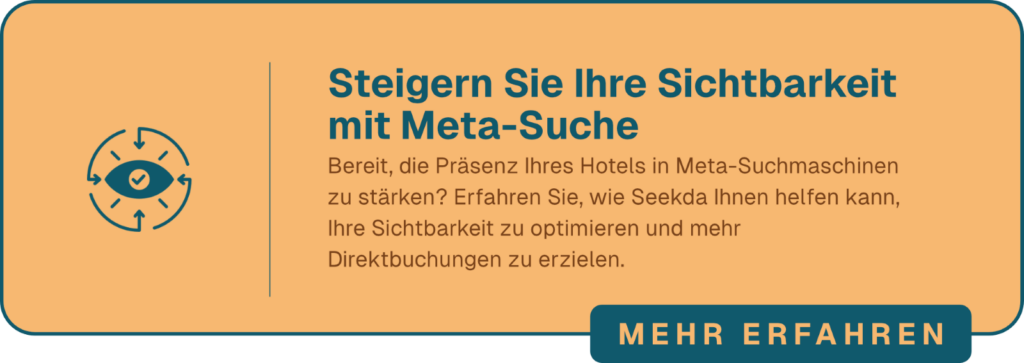 Die Meta-Suche gewinnt an Popularität, da sie den Reisenden Transparenz und Komfort bietet und den Hotels ermöglicht, ihre Direktbuchungsraten neben den Preisen der Agenturen anzuzeigen. Seekda, ein führender Anbieter digitaler Lösungen für Hotels, integriert die Meta-Suche direkt in seinen Werkzeugkasten, damit Hotels ihre Sichtbarkeit erhöhen und Direktbuchungen maximieren können.